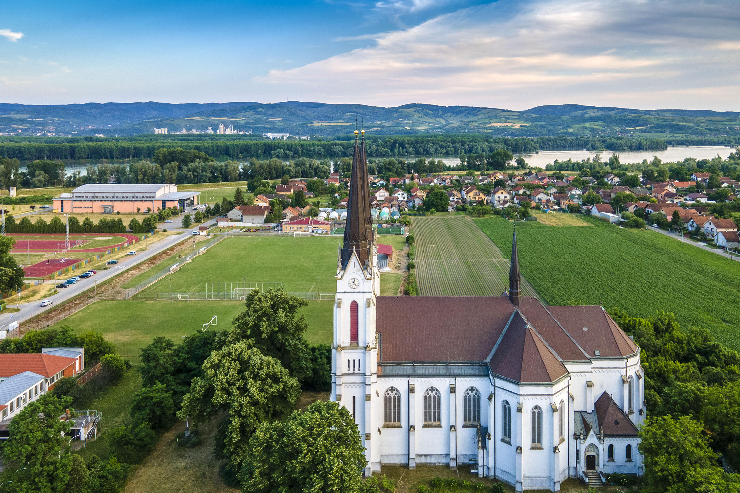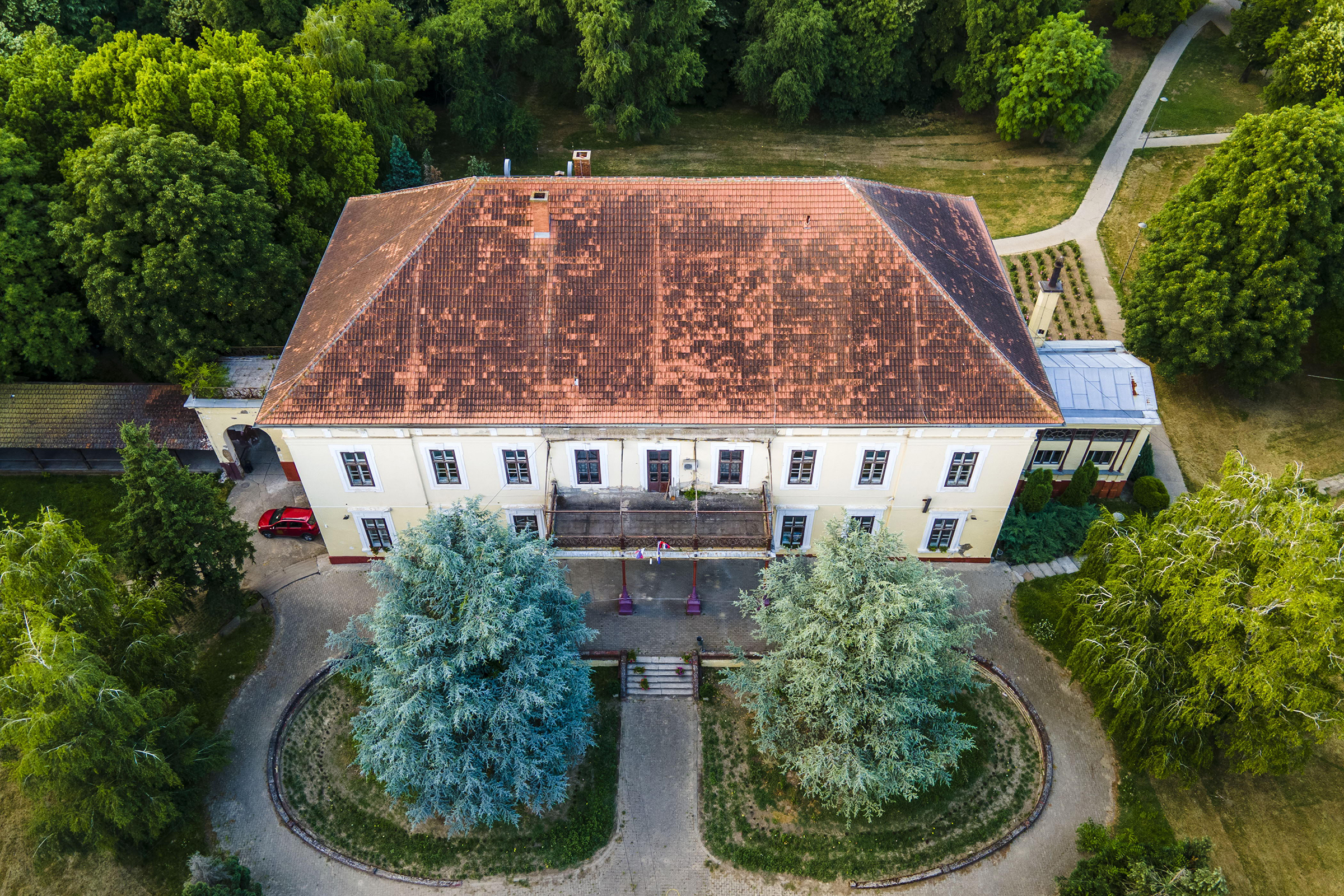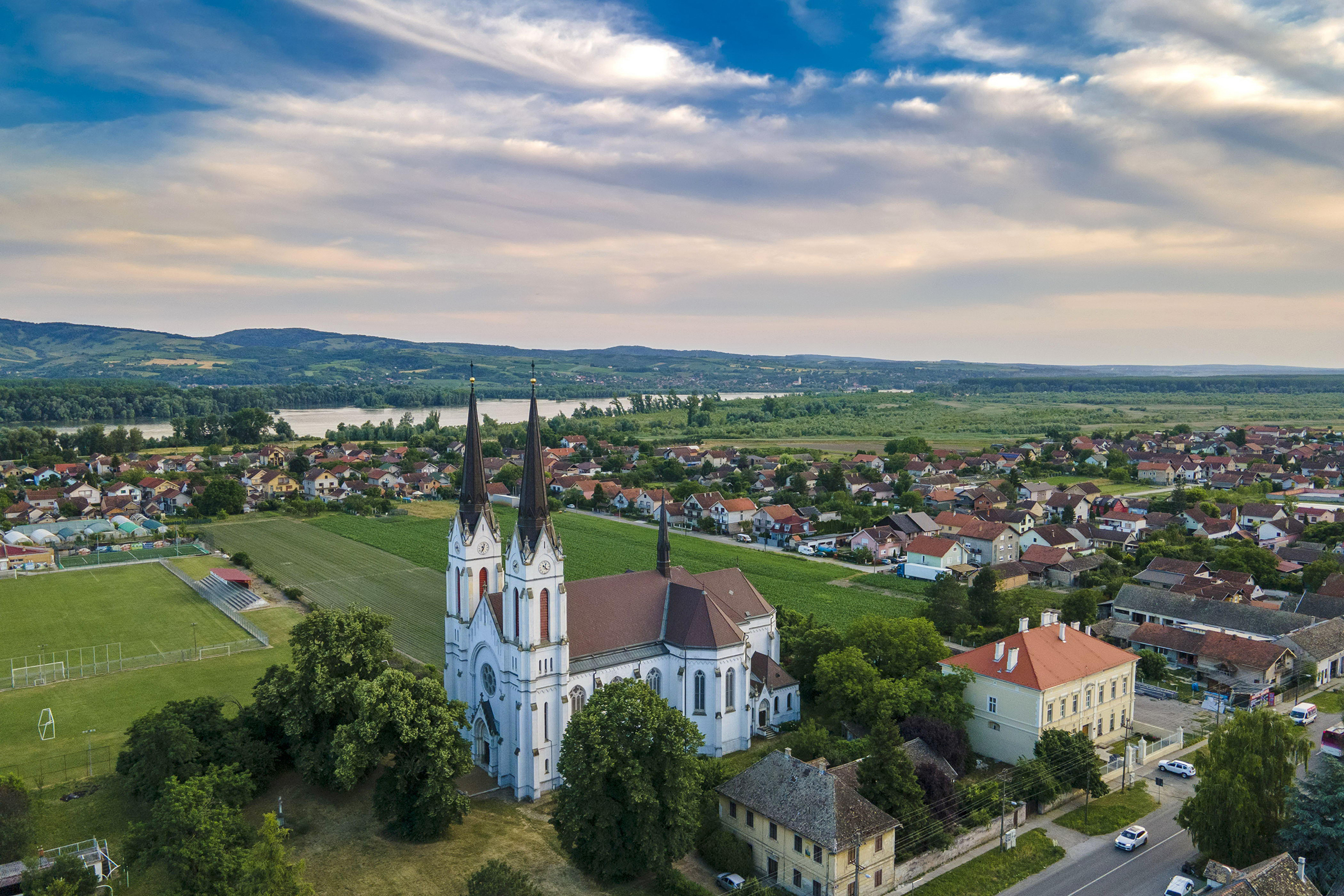 U neposrednoj blizini rimokatoličkog hrama je barokni Dvorac Hadik koji je 1777. izgradio austrijski feldmaršal i predsedavajući bečkog Dvorskog ratnog saveta, grof Andreas Hadik. Početkom 19. veka prelazi u posed grofovske porodice Kotek. Postoji legenda da su gosti Hadikovog dvorca u vreme kada je bio u vlasništvu grofova Kotek neposredno pre Sarajevskog atentata, bili nadvojvoda Franc Ferdinand i njegova supruga Sofija Kotek i da je baš tu Johan Štraus Mlađi komponovao „Na lepom plavom Dunavu”. Danas se u ovom elegantnom zdanju nalazi Poljoprivredna škola.