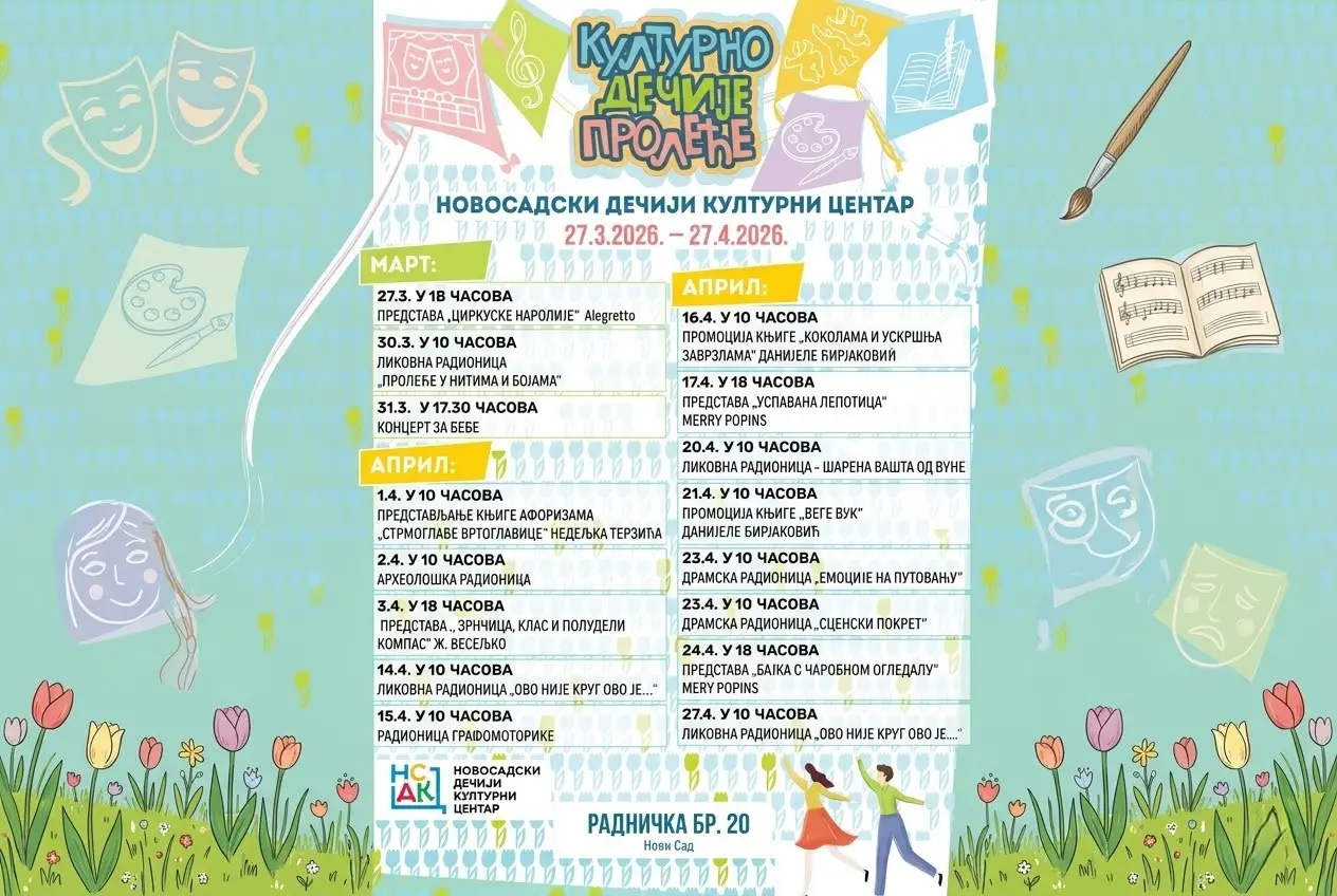 The Novi Sad Children’s Cultural Centre has prepared a rich programme titled Cultural Children’s Spring. This spring, the youngest residents and visitors to Novi Sad will have the opportunity to explore their talents, develop their imagination, and enjoy their first encounters with art through a carefully curated programme. The event represents a blend of education and entertainment, offering content tailored to various ages – from infants to primary school pupils.